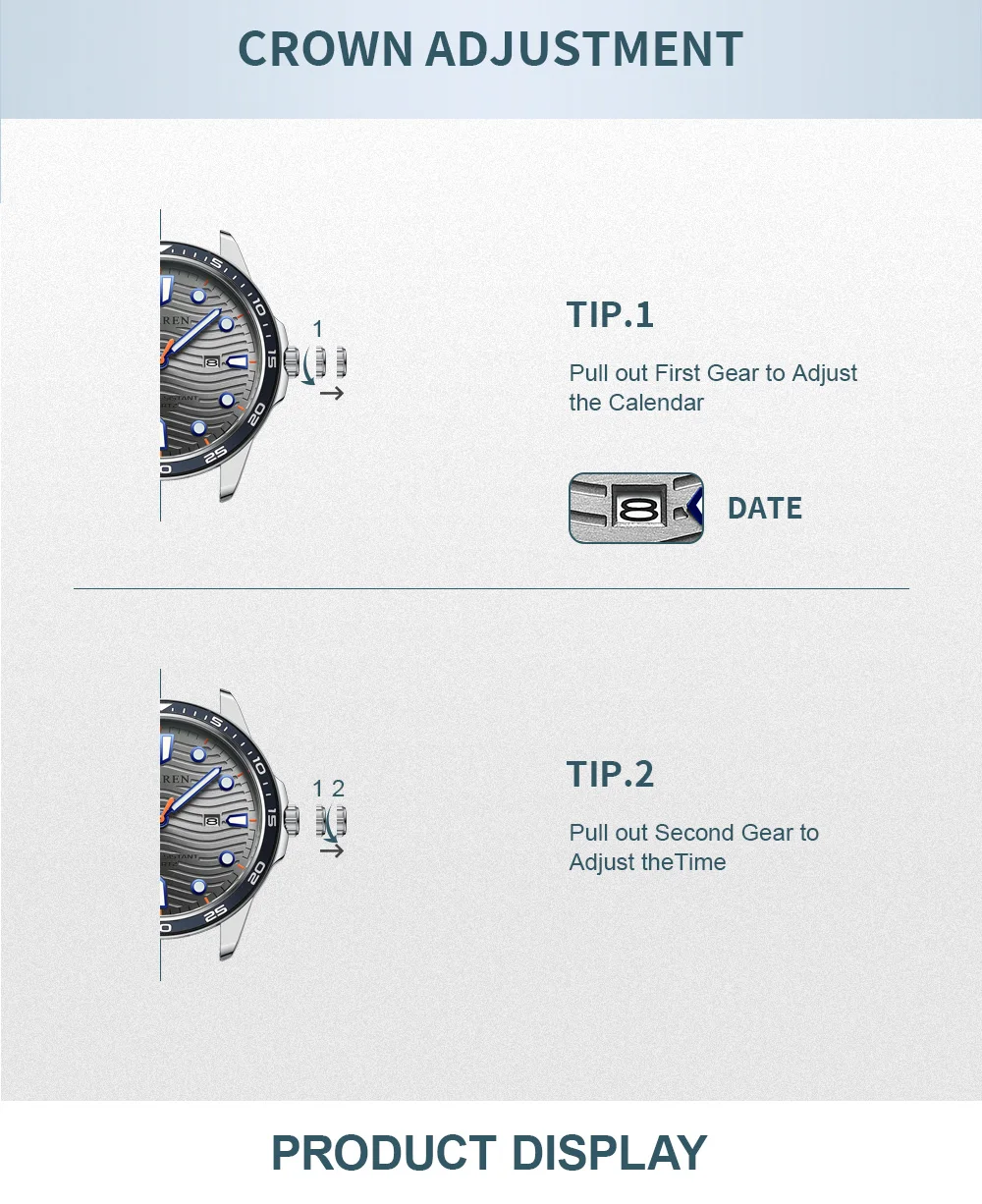 Material de caixa a prova d'água: Caixa em aço inoxidável escovado e adequado para uso diário em casa, mas não recomendada para natação, banho de chuva ou banheira